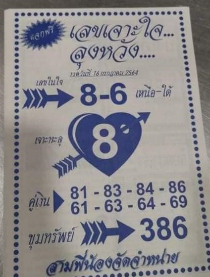 เช็คหวย เลขเจาะใจ ลุงหวัง งวดที่16/7/64